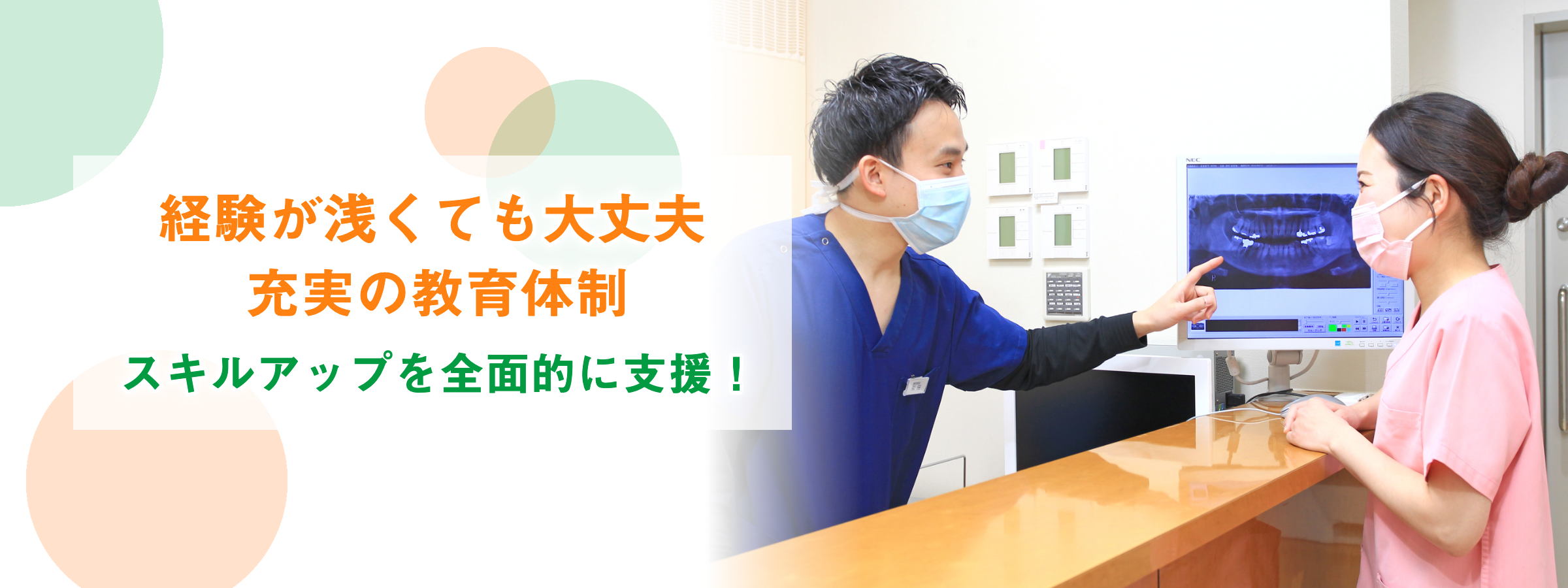 未経験の方や経験の浅い方も、院長や先輩のサポートできちんと業務をこなせるようになりますので、ご安心ください。